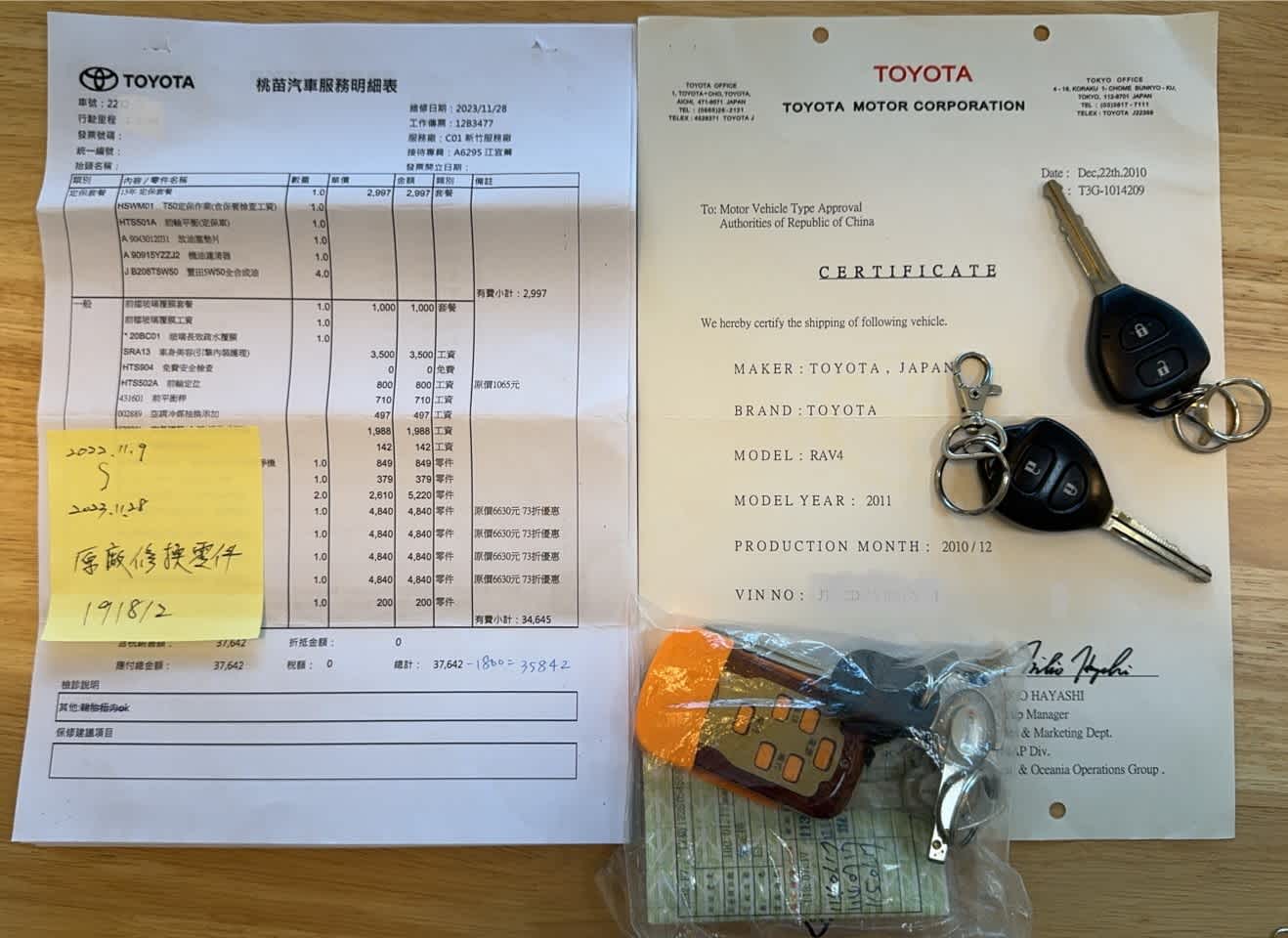 2010年TOYOTA RAV4 日本原裝進口 2.4L 但只需要繳2.0稅金 低里程保證僅14萬KM 近兩年更新多項耗材 原廠工單留存10多萬 輪胎 發電機 方向機 碟盤 來令片 火星塞 皮帶 考爾 連桿 電瓶 買回去不用再花大錢 原廠保養無事故泡水 內外乾淨漂亮又完整 售價$199000 實車在店 實車實價 可現金 可全額貸
